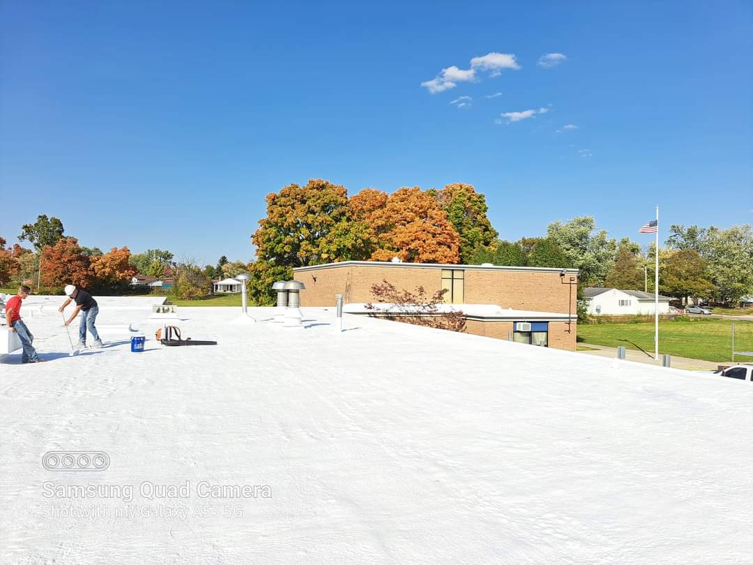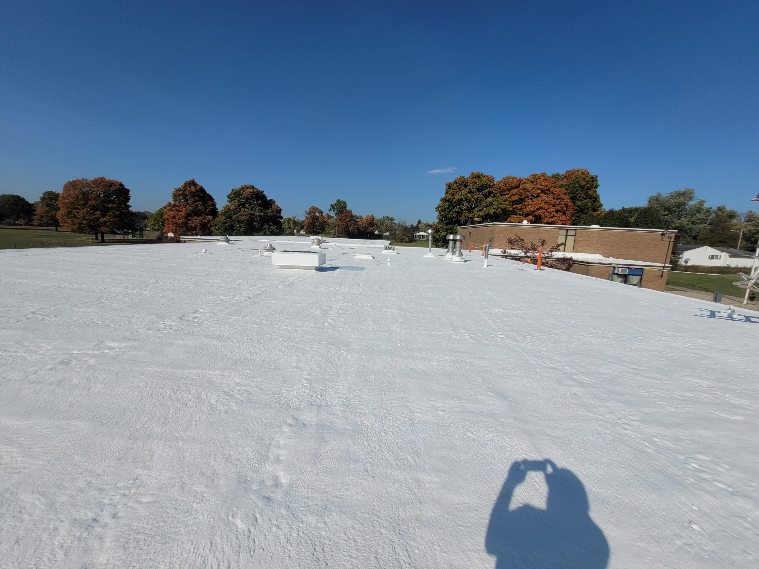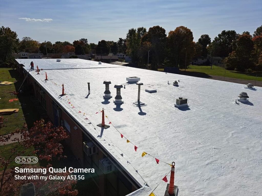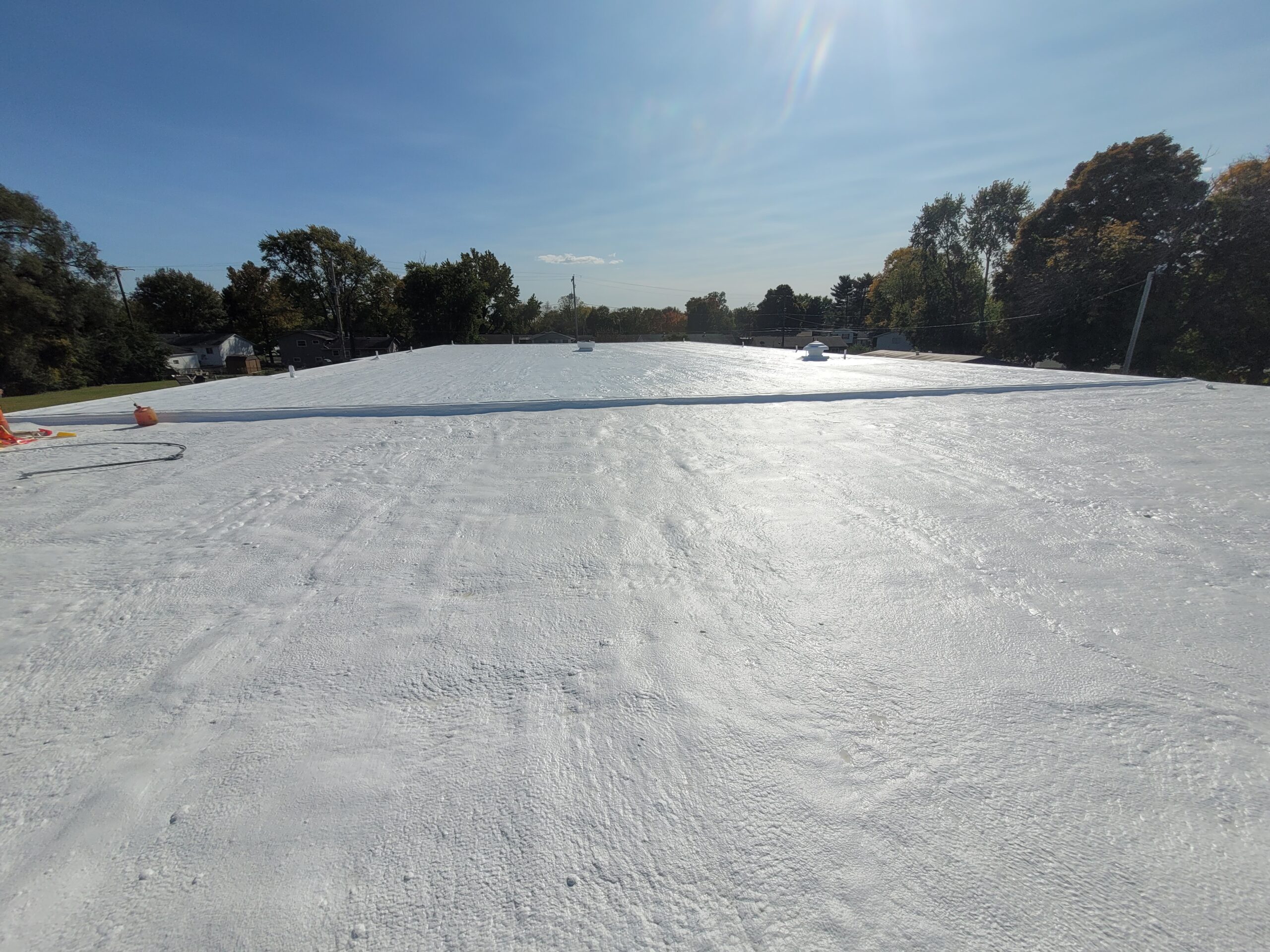 Foam Roofing is a long-time favorite of building owners and architects in the know. Unparallelled insulation, sound deadening, and an integrally waterproof seamless roof. Comprised of a closed cell foam, not unlike the foam used for flotation compartments in boats. Closed cell foam is high-strength, durable, and integrally waterproof. The closed cell internal structure means that even if the Acrylic top layer is punctured, the foam underneath is impervious to water migration. What does this mean, you might ask… Well, with a foam roof, a small puncture in the roof surface is unlikely to leak at all and can be fixed easily with caulk or left until the next 6-month roof inspection for us to repair. We always recommend that any roof perforation be fixed immediately for peace of mind and to prevent further damage, regardless of the roof system type.